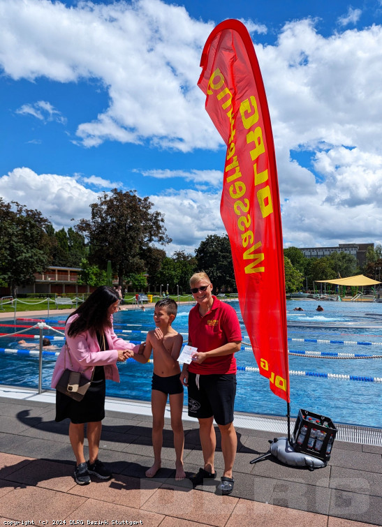 Am 15.Juni 2024 fand im Inselbad in Stuttgart-Untertürkheim der Schwimmabzeichentag 2024 statt. Der Bezirk Stuttgart beteiligte sich damit an der bundesweiten Aktion des Bundesverbandes zur Förderung der Schwimmausbildung (BFS), in dem sich alle abnahmeberechtigten Verbände organisiert haben. Der Schwimmabzeichentag bot allen Interessierten die Möglichkeit, die eigenen Fähigkeiten und Fertigkeiten beim Schwimmen zu überprüfen, sich über die Ausbildung zum sicheren Schwimmen zu informieren, sowie unkompliziert und spontan ein Abzeichen zu absolvieren. Im Inselbad waren mit Start um 13 Uhr zwei Ausbilder mit vier weiteren Helfern im Einsatz und haben in Summe 8 Schwimmabzeichen abgenommen. Die Prüflinge konnten ihr Abzeichen direkt mit nach Hause nehmen. Frau Steinhülb-Joos, Mitgli ... Mehr erfahren